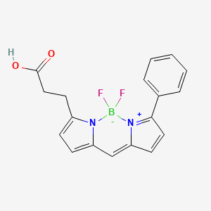 This compound, chemically known as 3-(4,4-Difluoro-5-phenyl-3a,4a-diaza-4-bora-s-indacen-3-yl)propionic acid, is a member of the boron-dipyrromethene (BODIPY) family of fluorescent dyes.[1] These dyes are renowned for their superior photophysical properties, including high fluorescence quantum yields, sharp emission peaks, and excellent photostability, making them invaluable tools in various biological and diagnostic applications.[1][2] The presence of a carboxylic acid group provides a convenient handle for conjugation to biomolecules such as proteins and nucleic acids through standard coupling chemistries.[1][3]