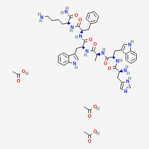 C[C@@H](C(=O)N[C@@H](CC1=CNC2=CC=CC=C21)C(=O)N[C@H](CC3=CC=CC=C3)C(=O)N[C@@H](CCCCN)C(=O)N)NC(=O)[C@@H](CC4=CNC5=CC=CC=C54)NC(=O)[C@H](CC6=CN=CN6)N.CC(=O)O.CC(=O)O.CC(=O)O | |