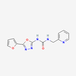 InChI=1S/C13H11N5O3/c19-12(15-8-9-4-1-2-6-14-9)16-13-18-17-11(21-13)10-5-3-7-20-10/h1-7H,8H2,(H2,15,16,18,19) | |