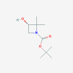 tert-Butyl (3S)-3-hydroxy-2,2-dimethyl-azetidine-1-carboxylate is a compound of interest due to its potential biological activities. Understanding its pharmacological properties, mechanisms of action, and therapeutic applications is crucial for its development in medicinal chemistry.