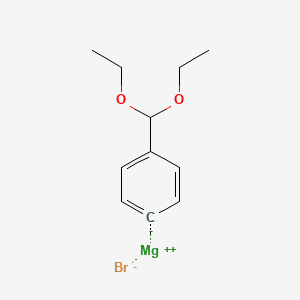 The synthesis of 4-(Diethoxymethyl)phenylmagnesium bromide typically involves the reaction of 4-(Diethoxymethyl)phenyl bromide with magnesium in an anhydrous ether solvent. The resulting compound can be characterized using techniques such as NMR spectroscopy, mass spectrometry, and infrared spectroscopy, which confirm its structure and purity.