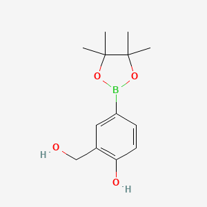 The mechanism of action of 2-(hydroxymethyl)-4-(4,4,5,5-tetramethyl-1,3,2-dioxaborolan-2-yl)phenol primarily involves its ability to participate in cross-coupling reactions. The boronic ester group acts as a nucleophile, reacting with electrophilic aryl halides in the presence of a palladium catalyst. This results in the formation of new carbon-carbon bonds, which is a key step in the synthesis of complex organic molecules.