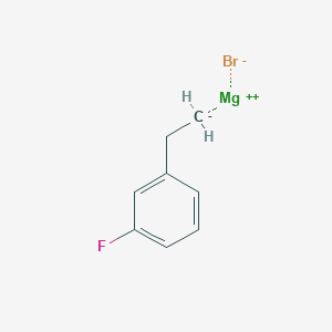 The mechanism of action of 3-Fluorophenethylmagnesium bromide involves the nucleophilic attack of the carbon-magnesium bond on electrophilic centers, such as carbonyl groups. This results in the formation of new carbon-carbon bonds. The magnesium bromide acts as a Lewis acid, stabilizing the transition state and facilitating the reaction .