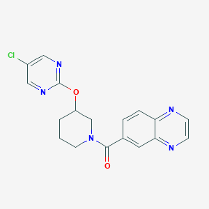 The compound 6-{3-[(5-chloropyrimidin-2-yl)oxy]piperidine-1-carbonyl}quinoxaline has garnered attention in pharmacological research due to its potential biological activities. This article aims to provide a comprehensive overview of its biological activity, including synthesis, mechanisms of action, and relevant case studies.
