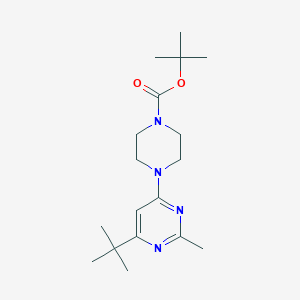 Biology: In biological research, tert-butyl 4-(6-tert-butyl-2-methylpyrimidin-4-yl)piperazine-1-carboxylate can be used as a building block for the design of bioactive molecules. Its ability to interact with biological targets makes it valuable in drug discovery and development.
