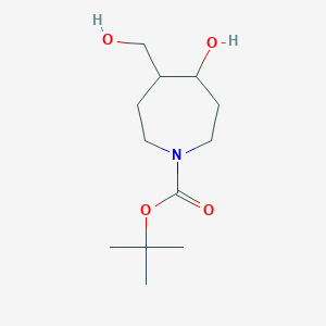 Synthetic Routes and Reaction Conditions: The synthesis of tert-butyl 4-hydroxy-5-(hydroxymethyl)azepane-1-carboxylate typically involves the reaction of azepane derivatives with tert-butyl chloroformate under basic conditions. The reaction is carried out in an organic solvent such as dichloromethane, and the product is purified using standard chromatographic techniques .