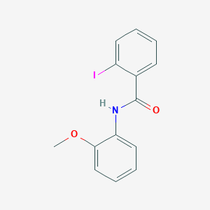 The mechanism of action of 2-Iodo-N-(2-methoxyphenyl)benzamide involves its interaction with specific molecular targets. The iodine atom and methoxy group play crucial roles in binding to target proteins or enzymes, thereby modulating their activity. The compound can inhibit or activate biochemical pathways depending on the nature of the target.