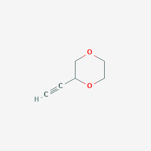The mechanism of action of 2-ethynyl-1,4-dioxane involves its interaction with specific molecular targets. The ethynyl group can participate in various chemical reactions, leading to the formation of reactive intermediates that can interact with biological molecules. These interactions can result in the modulation of cellular pathways and biological activities .