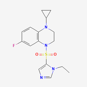 1-Cyclopropyl-4-(3-ethylimidazol-4-yl)sulfonyl-6-fluoro-2,3-dihydroquinoxaline is a complex organic compound that features a quinoxaline core, a cyclopropyl group, an ethylimidazole moiety, and a sulfonyl fluoride group