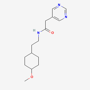 N-[2-(4-methoxycyclohexyl)ethyl]-2-pyrimidin-5-ylacetamide is a synthetic organic compound with potential applications in various fields, including medicinal chemistry and materials science. This compound features a pyrimidine ring, which is known for its biological activity, and a methoxycyclohexyl group, which can influence its chemical properties and interactions.