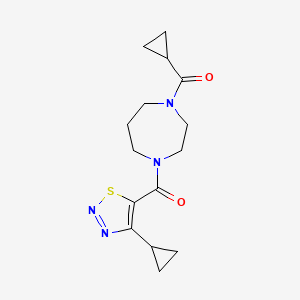 Cyclopropyl-[4-(4-cyclopropylthiadiazole-5-carbonyl)-1,4-diazepan-1-yl]methanone is a complex organic compound featuring a cyclopropyl group, a thiadiazole ring, and a diazepane ring