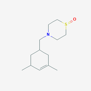 The synthesis of 4-[(3,5-Dimethylcyclohex-3-en-1-yl)methyl]-1,4-thiazinane 1-oxide typically involves the reaction of 3,5-dimethylcyclohex-3-en-1-ylmethyl chloride with 1,4-thiazinane in the presence of an oxidizing agent. The reaction conditions often include a solvent such as dichloromethane and a catalyst to facilitate the reaction. The mixture is usually stirred at room temperature for several hours to ensure complete conversion.