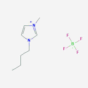 The mechanism of action of 1-butyl-3-methylimidazolium tetrafluoroborate involves its ability to interact with various molecular targets through ionic interactions and hydrogen bonding. These interactions can stabilize transition states, enhance reaction rates, and improve the solubility of reactants and products. The compound’s unique ionic nature allows it to act as both a solvent and a catalyst in various chemical processes .