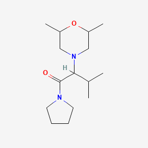 The synthesis of 2-(2,6-Dimethylmorpholin-4-yl)-3-methyl-1-pyrrolidin-1-ylbutan-1-one typically involves a multi-step process. One common method includes the Mannich reaction, which introduces an aminoalkyl substituent into the molecule. This reaction involves the use of formaldehyde and 2,6-dimethylmorpholine under reflux conditions . Industrial production methods may involve similar synthetic routes but are optimized for large-scale production, ensuring higher yields and purity.