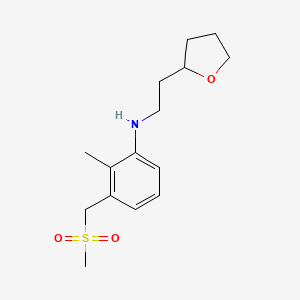 2-methyl-3-(methylsulfonylmethyl)-N-[2-(oxolan-2-yl)ethyl]aniline is an organic compound with a complex structure that includes a methylsulfonyl group, an aniline derivative, and an oxolane ring