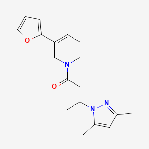3-(3,5-dimethylpyrazol-1-yl)-1-[5-(furan-2-yl)-3,6-dihydro-2H-pyridin-1-yl]butan-1-one is a complex organic compound that features a pyrazole ring, a furan ring, and a pyridine ring