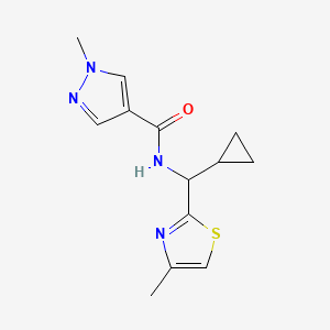N-[cyclopropyl-(4-methyl-1,3-thiazol-2-yl)methyl]-1-methylpyrazole-4-carboxamide is a complex organic compound with potential applications in various scientific fields. This compound features a unique structure that includes a cyclopropyl group, a thiazole ring, and a pyrazole carboxamide moiety, making it an interesting subject for chemical research and industrial applications.
