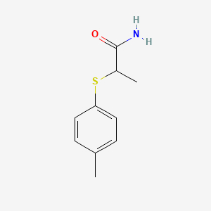 The synthesis of 2-(4-Methylphenyl)sulfanylpropanamide typically involves the reaction of 4-methylthiophenol with 2-bromopropanamide under basic conditions. The reaction proceeds via a nucleophilic substitution mechanism, where the sulfanyl group replaces the bromine atom. The reaction is usually carried out in the presence of a base such as sodium hydroxide or potassium carbonate, and the reaction mixture is heated to facilitate the substitution.