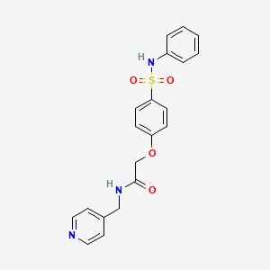 2-[4-(phenylsulfamoyl)phenoxy]-N-(pyridin-4-ylmethyl)acetamide is a complex organic compound that has garnered interest in various scientific fields due to its unique chemical structure and potential applications. This compound features a phenylsulfamoyl group attached to a phenoxy moiety, which is further connected to a pyridin-4-ylmethyl acetamide group. The presence of these functional groups imparts distinct chemical properties and reactivity to the compound.