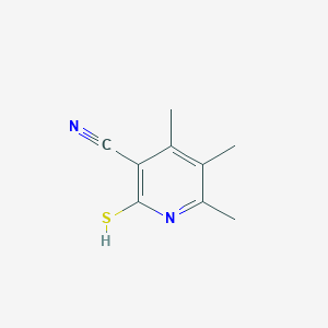 4,5,6-trimethyl-2-sulfanylpyridine-3-carbonitrile has a wide range of scientific research applications. It is used in chemistry for studying reaction mechanisms and developing new synthetic methods. In biology, it is used for understanding biochemical pathways and interactions. In medicine, this compound is investigated for its potential therapeutic effects. Additionally, it has industrial applications in the production of various chemicals and materials.