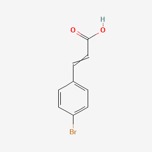 The mechanism of action of 3-(4-Bromophenyl)acrylic acid involves its interaction with various molecular targets. The bromine atom and the carboxylic acid group play crucial roles in its reactivity. The compound can form hydrogen bonds and participate in electrophilic aromatic substitution reactions, making it a versatile intermediate in organic synthesis .