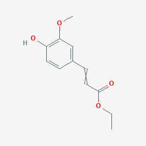 This compound, also widely known as Ethyl ferulate, is an ester derivative of ferulic acid, a ubiquitous phenolic compound found in the plant kingdom.[1] This compound and its parent molecule are recognized for their potent antioxidant properties.[1][] Ethyl ferulate's increased lipophilicity, compared to ferulic acid, enhances its ability to cross cell membranes, making it a compound of significant interest in the cosmetic, pharmaceutical, and food industries for its roles as an antioxidant, UV absorber, and food preservative.[1][3] Its applications range from skin care and sun protection formulations to a model compound in the study of natural phenolic antioxidants.[3] This guide provides a comprehensive overview of its chemical properties, structure, and detailed experimental protocols for its synthesis and analysis.