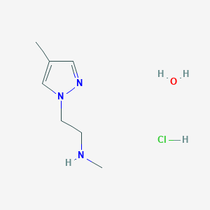 The mechanism of action of N-Methyl-2-(4-methyl-1H-pyrazol-1-yl)ethanamine hydrochloride hydrate involves its interaction with specific molecular targets, such as enzymes or receptors. The compound can modulate the activity of these targets, leading to various biological effects. The exact pathways involved depend on the specific application and context of use.