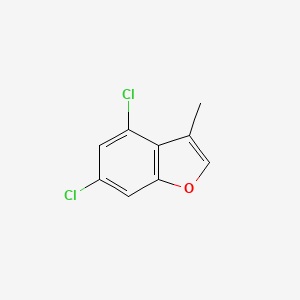 This compound is a specific member of the halogenated benzofuran class, distinguished by the presence of two chlorine atoms at positions 4 and 6 of the benzene ring and a methyl group at position 3 of the furan ring. americanelements.com This particular substitution pattern dictates its unique chemical identity and reactivity.