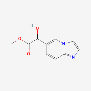The mechanism by which Methyl 2-hydroxy-2-(imidazo[1,2-a]pyridin-6-yl)acetate exerts its effects involves its interaction with specific molecular targets and pathways. The compound may bind to enzymes or receptors, leading to the modulation of biological processes. The exact molecular targets and pathways involved depend on the specific application and biological context.