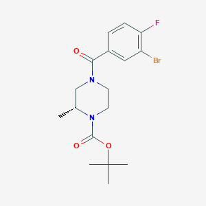 ®-tert-butyl 4-(3-bromo-4-fluorobenzoyl)-2-methylpiperazine-1-carboxylate is a complex organic compound that has garnered interest in various fields of scientific research. This compound is characterized by its unique structure, which includes a piperazine ring substituted with a tert-butyl group, a bromofluorobenzoyl moiety, and a methyl group. Its distinct chemical properties make it a valuable subject for studies in chemistry, biology, and medicine.