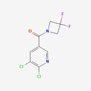 The mechanism of action of (5,6-Dichloropyridin-3-yl)(3,3-difluoroazetidin-1-yl)methanone would depend on its specific applications. In a medicinal context, it might interact with molecular targets such as enzymes or receptors, modulating their activity and leading to therapeutic effects. The pathways involved could include inhibition of specific enzymes, activation of signaling pathways, or binding to DNA or RNA.