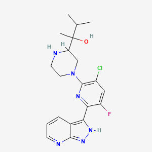 InChI=1S/C20H24ClFN6O/c1-11(2)20(3,29)15-10-28(8-7-23-15)19-13(21)9-14(22)17(25-19)16-12-5-4-6-24-18(12)27-26-16/h4-6,9,11,15,23,29H,7-8,10H2,1-3H3,(H,24,26,27) | |