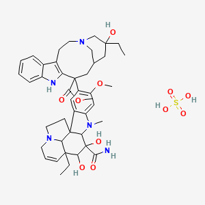 Vindesine (B1683056) sulfate (B86663) is classified as a vinca alkaloid. hmdb.cacymitquimica.com Vinca alkaloids are a group of complex dimeric indole (B1671886) alkaloids originally isolated from the Madagascar periwinkle plant, Catharanthus roseus. hmdb.caselleckchem.comresearchgate.net These alkaloids are characterized by a dimeric chemical structure composed of an indole nucleus (catharanthine) and a dihydroindole nucleus (vindoline), joined together. hmdb.ca Vindesine, like other vinca alkaloids such as vinblastine (B1199706) and vincristine (B1662923), exerts its biological effects by interfering with microtubule dynamics. selleckchem.comhemonc.orgtargetmol.comontosight.ai