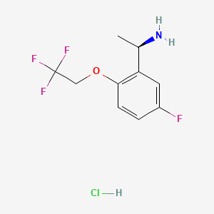 The mechanism of action of ®-1-(5-Fluoro-2-(2,2,2-trifluoroethoxy)phenyl)ethan-1-amine hydrochloride involves its interaction with specific molecular targets. The compound’s fluorinated groups enhance its lipophilicity, allowing it to cross cell membranes more easily and interact with intracellular targets. It may modulate the activity of enzymes or receptors involved in key biological pathways, leading to its observed effects.