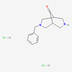 The mechanism of action of 3-Benzyl-3,7-diaza-bicyclo[3.3.1]nonan-9-one dihydrochloride involves its interaction with specific molecular targets. The compound can bind to enzymes or receptors, modulating their activity and leading to various biological effects. The exact pathways and targets depend on the specific application and context of use.