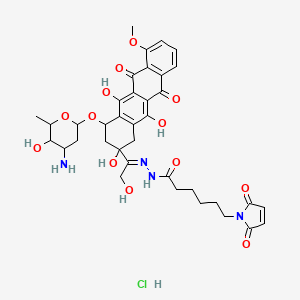 N-[(E)-[1-[4-(4-amino-5-hydroxy-6-methyloxan-2-yl)oxy-2,5,12-trihydroxy-7-methoxy-6,11-dioxo-3,4-dihydro-1H-tetracen-2-yl]-2-hydroxyethylidene]amino]-6-(2,5-dioxopyrrol-1-yl)hexanamide;hydrochloride