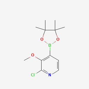 The mechanism of action of 2-Chloro-3-methoxy-4-(4,4,5,5-tetramethyl-1,3,2-dioxaborolan-2-yl)pyridine primarily involves its role as a boronic ester in cross-coupling reactions. The boronic ester group interacts with palladium catalysts to form a palladium-boron complex, which then undergoes transmetalation with an aryl or vinyl halide. This is followed by reductive elimination to form the desired carbon-carbon bond. The chloro and methoxy groups on the pyridine ring can also participate in various chemical reactions, contributing to the compound’s versatility.