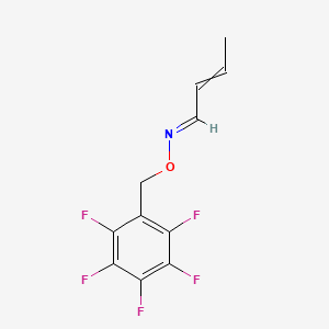 The synthesis of (E)-N-[(2,3,4,5,6-pentafluorophenyl)methoxy]but-2-en-1-imine typically involves the reaction of 2,3,4,5,6-pentafluorobenzaldehyde with an appropriate amine under specific conditions. The reaction is often carried out in the presence of a base to facilitate the formation of the imine bond. The reaction conditions, such as temperature and solvent, can vary depending on the desired yield and purity of the product.