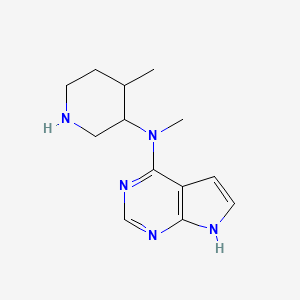 The mechanism of action of N-methyl-N-(4-methylpiperidin-3-yl)-7H-pyrrolo[2,3-d]pyrimidin-4-amine involves its interaction with specific molecular targets. It can bind to enzymes or receptors, modulating their activity. The exact pathways depend on the biological context and the specific target. For example, it may inhibit enzyme activity by binding to the active site or alter receptor function by acting as an agonist or antagonist .