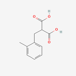 2-(2-Methylbenzyl)-malonic acid is a malonic acid derivative featuring a 2-methylbenzyl substituent attached to the central carbon of the malonic acid backbone (HOOC-CH2-C(COOH)-R, where R = 2-methylbenzyl). Malonic acid derivatives are widely utilized in organic synthesis, pharmaceuticals, and polymer chemistry due to their dual carboxylic acid groups, which enable diverse reactivity, including decarboxylation and condensation reactions.