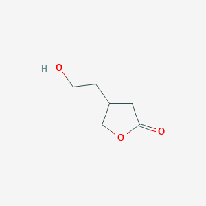 - NMR : ¹H and ¹³C NMR (in CDCl₃ or DMSO-d₆) confirm structural integrity. Key signals include the lactone carbonyl (δ ~175 ppm in ¹³C NMR) and hydroxyethyl protons (δ ~3.6–4.0 ppm in ¹H NMR) .