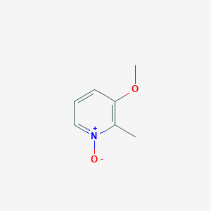 3-Methoxy-2-methylpyridine 1-oxide (CAS: 35392-65-5) is a pyridine derivative characterized by a methoxy group at the 3-position, a methyl group at the 2-position, and an N-oxide functional group. Its molecular formula is C₇H₉NO₂, with a molecular weight of 139.152 g/mol . The compound is synthesized via oxidation of 2-methylpyridine derivatives, achieving a high yield of 99% under optimized conditions, and exists as a white solid . Key analytical techniques such as ¹H NMR, ¹³C NMR, and LC-MS confirm its structure and purity .
