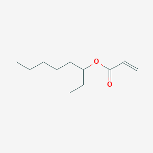 Octane-3-yl acrylate is an acrylate ester derived from acrylic acid and octan-3-ol. Acrylates are characterized by their α,β-unsaturated carbonyl group, which enables rapid polymerization and versatility in industrial applications such as coatings, adhesives, and plastics . The octane-3-yl substituent introduces a branched alkyl chain, influencing properties like hydrophobicity, flexibility, and polymerization kinetics.