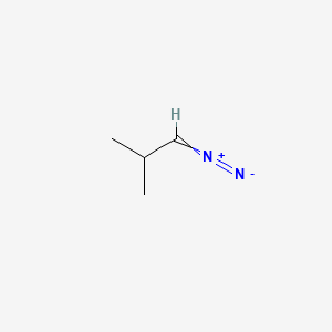 Diazoisobutane (C₄H₈N₂) is a diazo compound characterized by the general structure (CH₃)₂C=N+=N⁻. It is synthesized via the decomposition of N-nitroso-N-isobutyl urea in methylene chloride (CH₂Cl₂) solvent . This compound is highly reactive due to its diazo group, which enables participation in cycloaddition, alkylation, and carbene-transfer reactions. A notable reaction involves gaseous cyanic acid (HOCN), where this compound in CH₂Cl₂ reacts with HOCN across a broad temperature range (-80°C to 30°C). The reaction endpoint is marked by the disappearance of this compound’s characteristic color .