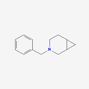 rac-(1R,6R)-3-benzyl-3-azabicyclo[4.1.0]heptane, cis is a bicyclic compound that features a nitrogen atom within its structure. This compound is of significant interest in medicinal chemistry due to its unique structural properties and potential applications in drug design. The bicyclic framework provides a rigid structure that can mimic other biologically active molecules, making it a valuable scaffold in the development of new pharmaceuticals.