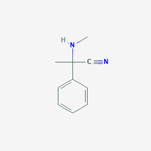 This compound, also known as α-phenyl-α-(methylamino)acetonitrile, holds a significant position in organic synthesis primarily as a precursor and intermediate. Its importance stems from its unique molecular architecture. The structure is characterized by a central quaternary carbon atom (the α-carbon) bonded to four distinct functional groups: a phenyl ring, a methylamino group (-NHCH₃), a nitrile group (-C≡N), and a methyl group.