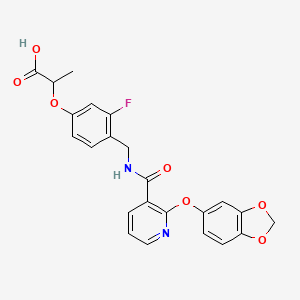 CC(C(=O)O)OC1=CC(=C(C=C1)CNC(=O)C2=C(N=CC=C2)OC3=CC4=C(C=C3)OCO4)F |