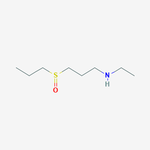 N-ethyl-3-propylsulfinylpropan-1-amine is a tertiary amine characterized by a propan-1-amine backbone substituted with an ethyl group at the nitrogen atom and a propylsulfinyl (-SO-propyl) group at the 3-position.