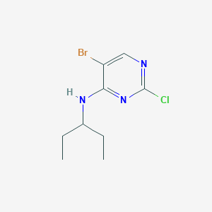 5-bromo-2-chloro-N-(pentan-3-yl)pyrimidin-4-amine is a heterocyclic organic compound that contains both bromine and chlorine substituents on a pyrimidine ring