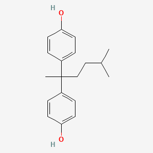 4,4'-(5-Methylhexane-2,2-diyl)diphenol is a bisphenol derivative characterized by a central 5-methylhexane backbone linking two phenolic rings. This modification may influence its physical-chemical properties, industrial applications, and biological interactions compared to well-studied bisphenols like BPA, bisphenol S (BPS), and bisphenol AF (BPAF) .